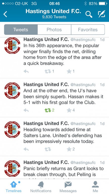 That's brilliant....nothing special what we do? I'd say its no where near in comparison. i think what Dan has proved that in his screen shots. We even have someone who updates the U18 games for the club to retweet, ok it's not as in depth as the first teams but close to what both Town and United do for their first teams, with Eastbourne Town you're lucky at times if you get a full time score for their under 18.