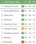 Problem is Adrian is that Hythe will almost certainly be in the play offs by the the time that game comes round. Why would they play anything other than a reserve team against Faversham when they have a play off game on the following Tuesday. Sadly, it appears we have made a complete mess of it over the past few weeks and I'm not sure we deserve to make it after 14 defeats. Just looking at the lack of comments on here regarding yesterday's game you can tell that most of us have sadly now given up.