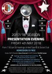 Friday 4th May 2018 at 7.30pm. There will player awards, raffle,baffet, Aution, Disco and more